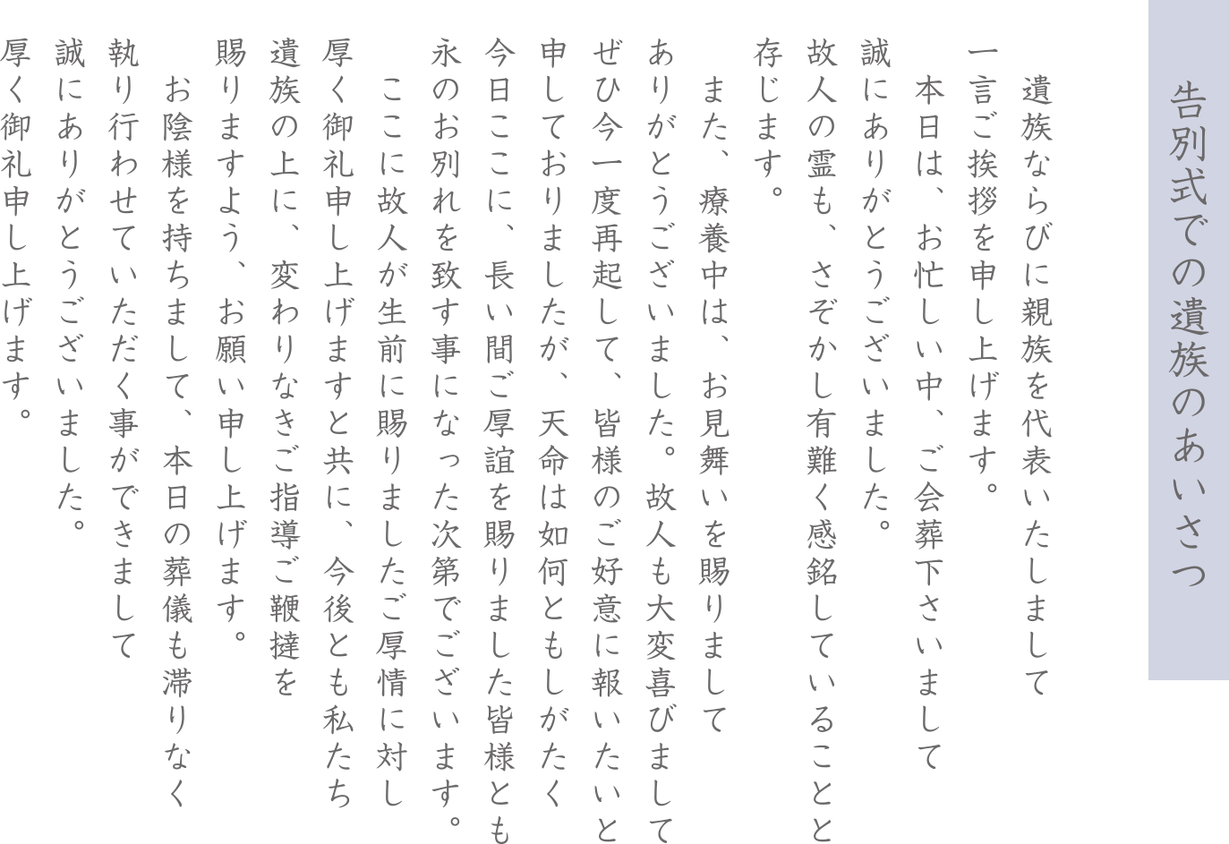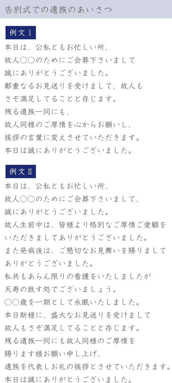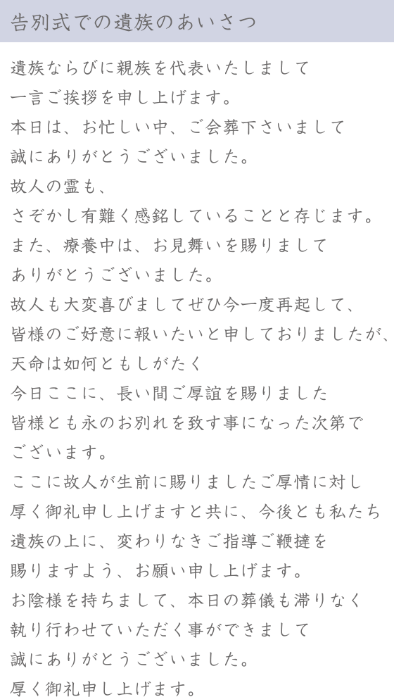 「告別式(長文)」でのあいさつ