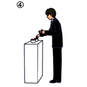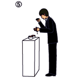 • 右手の親指、ひとさし指、中指で香をつまみます。
