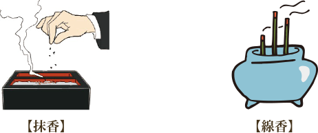 死者を弔うために香「抹香(粉末状に細かくした香)」や
