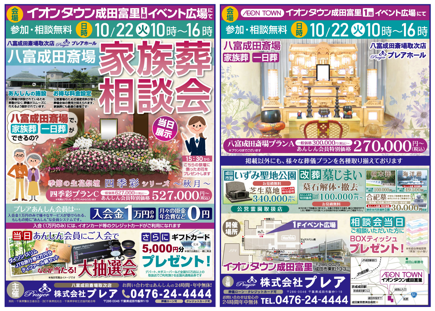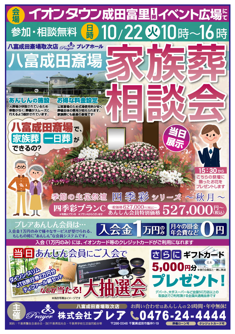 10月22日(火)、イオンタウン成田富里1F、イベント広場にて家族葬相談会を行います。