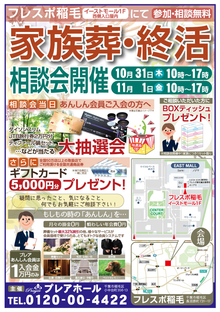 10月31日(木)、11月1日(金)フレスポ稲毛 イーストモール1F(西側入口屋内)にて家族葬・終活相談会を行います。