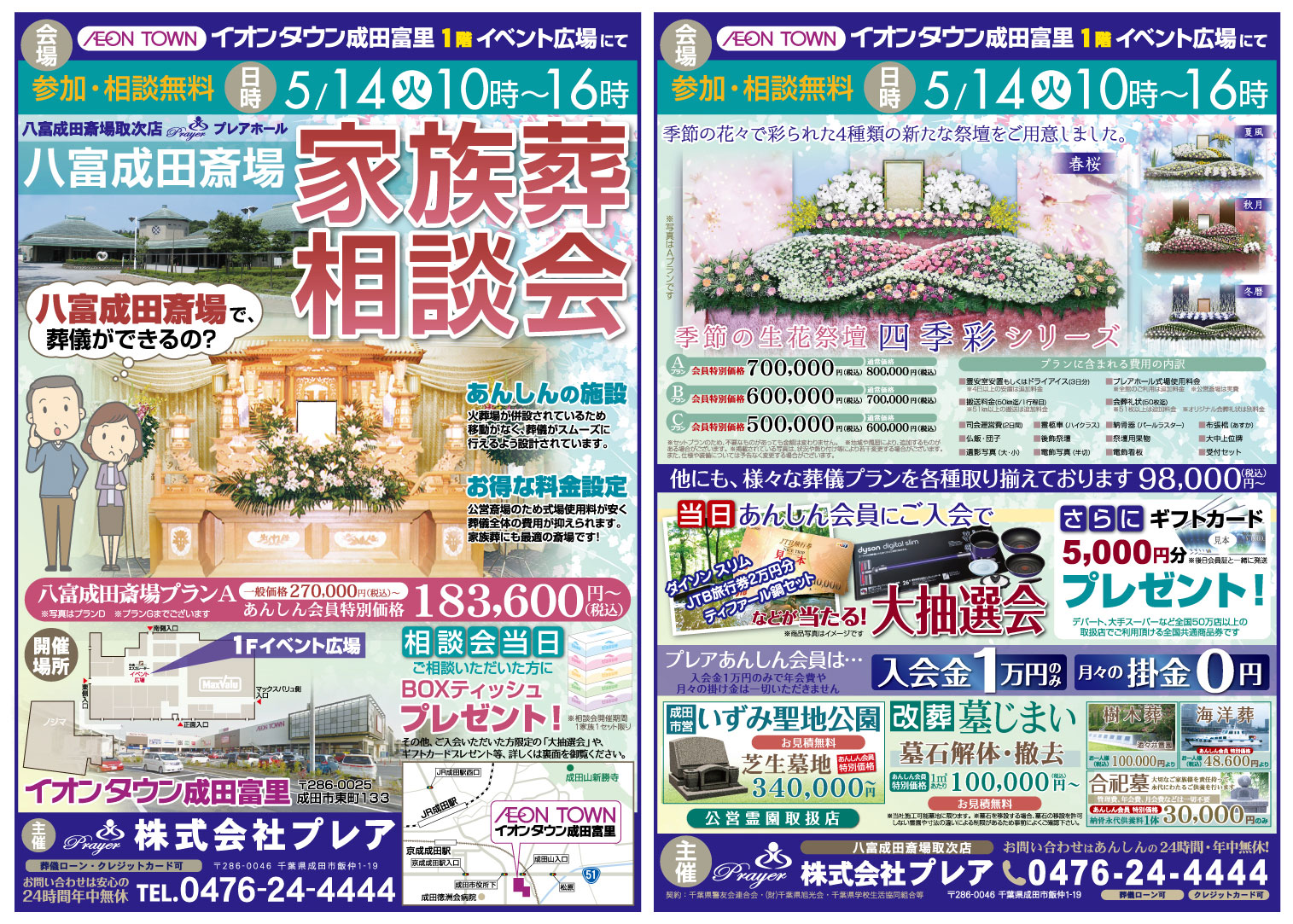 5月14日(火)、イオンタウン成田富里1F、イベント広場にて家族葬相談会を行います。
