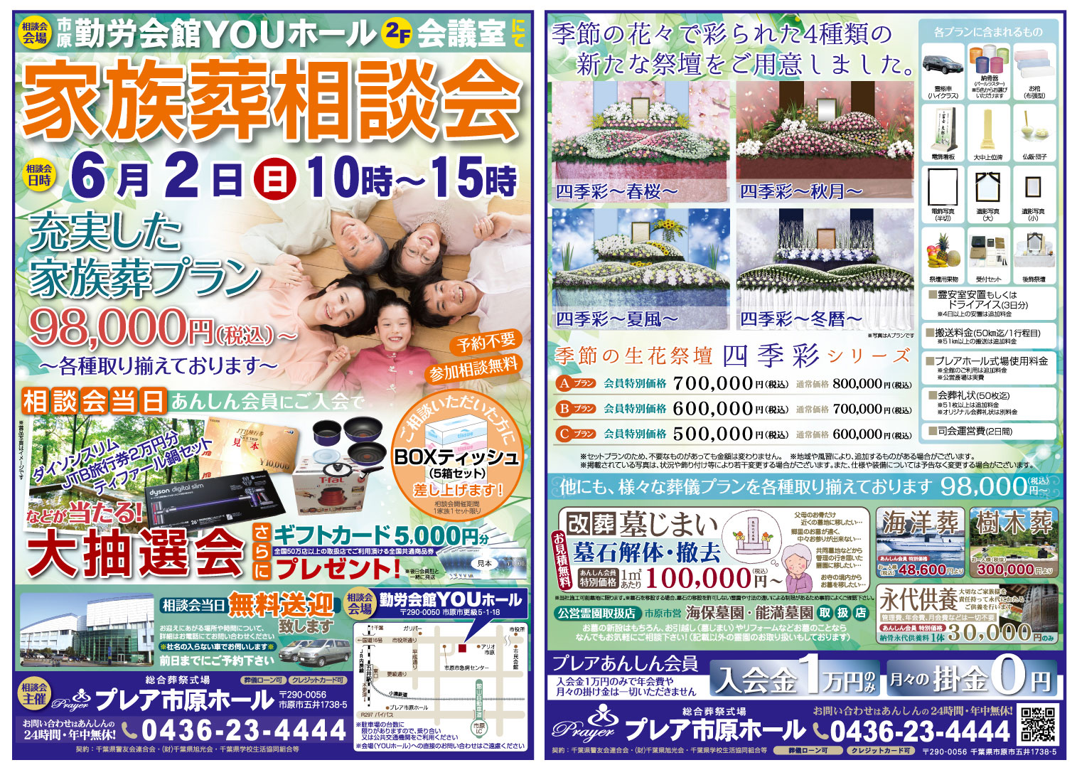 6月2日(日)、市原勤労会館YOUホールにて家族葬相談会を行います。