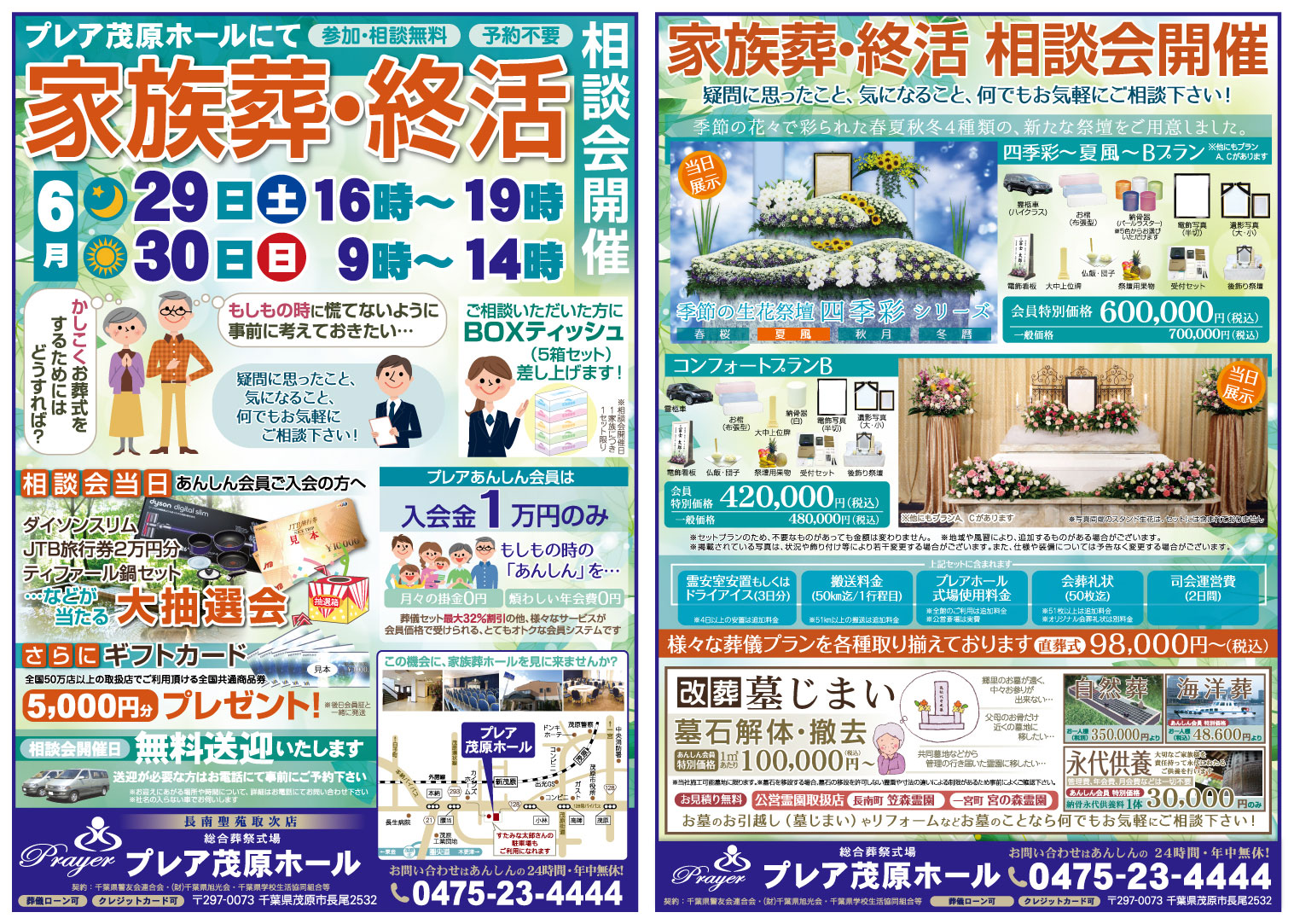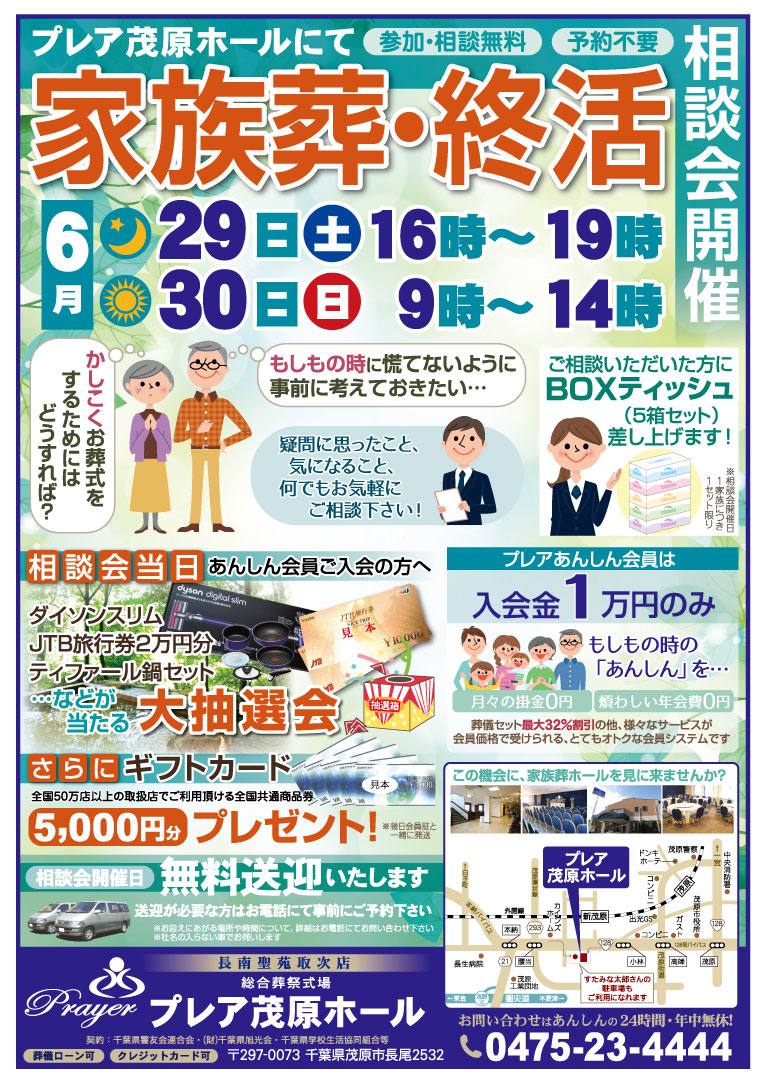 6月29日(土)、30日(日)の二日間、プレア茂原ホールにて「家族葬・終活相談会」を行います!