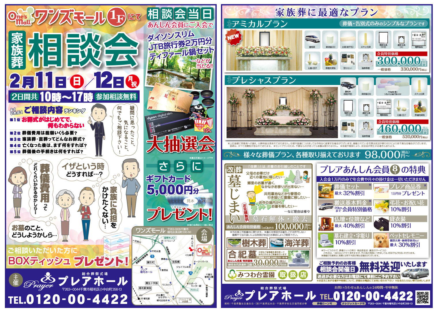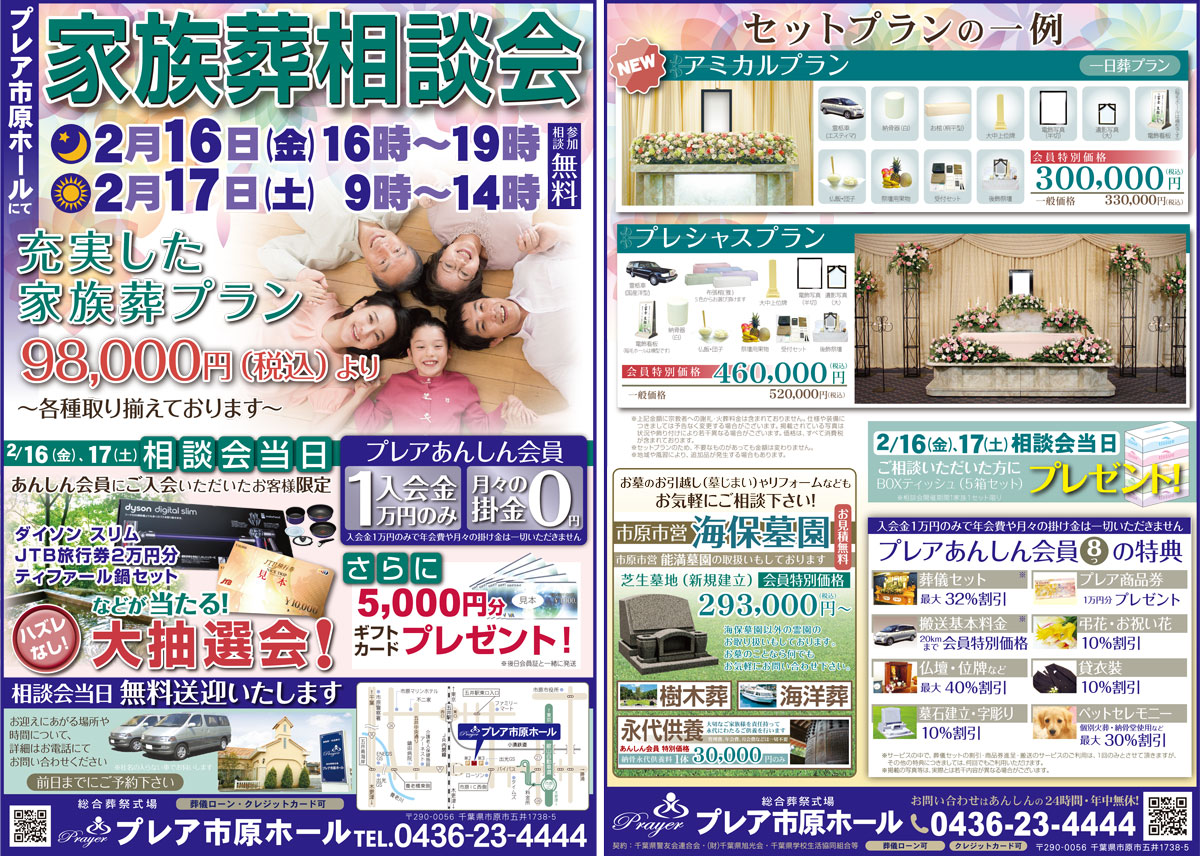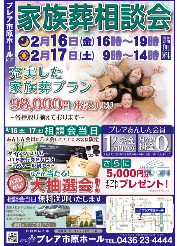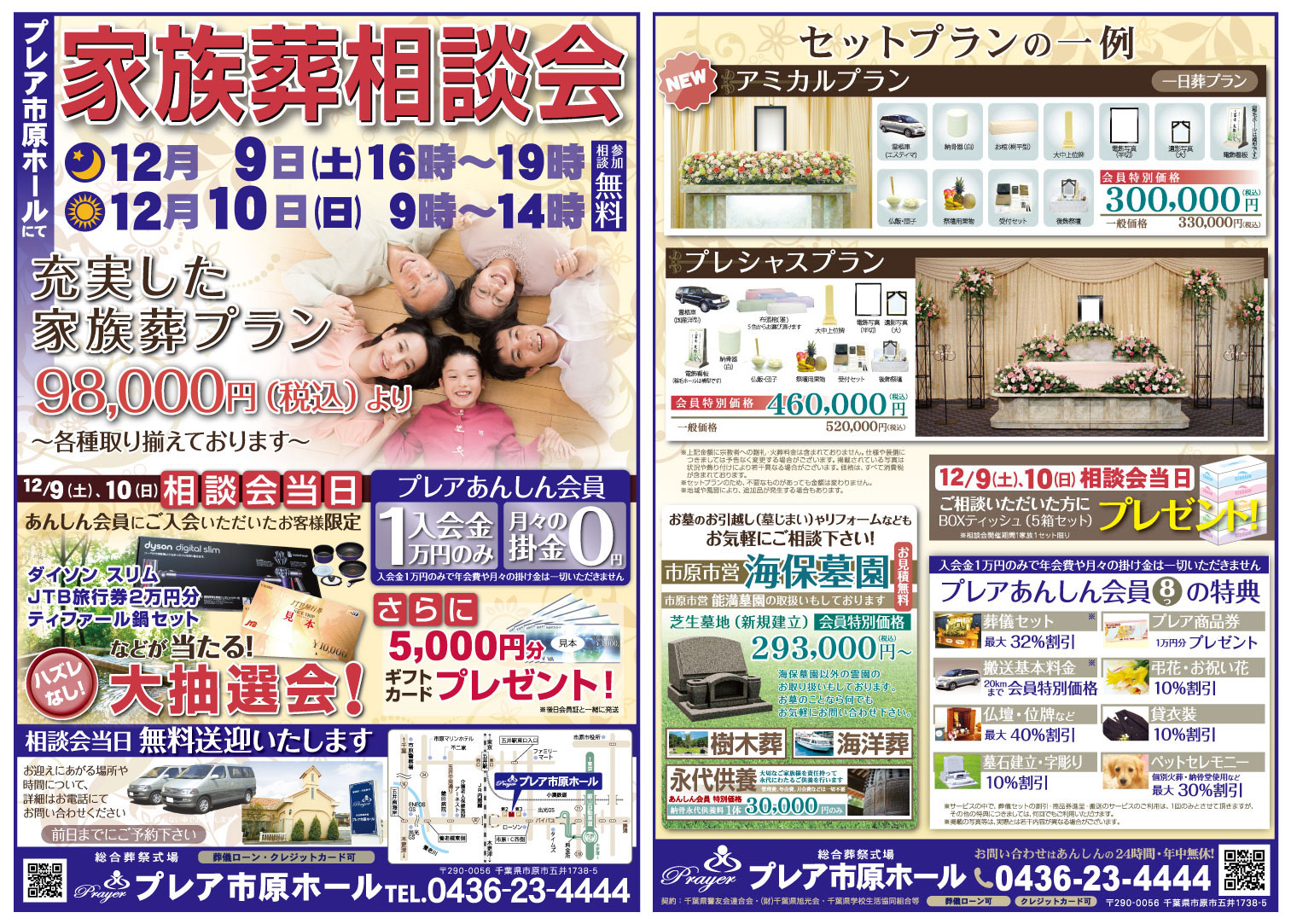 12月9日、10日の二日間、プレア市原ホールにて家族葬相談会を行います。