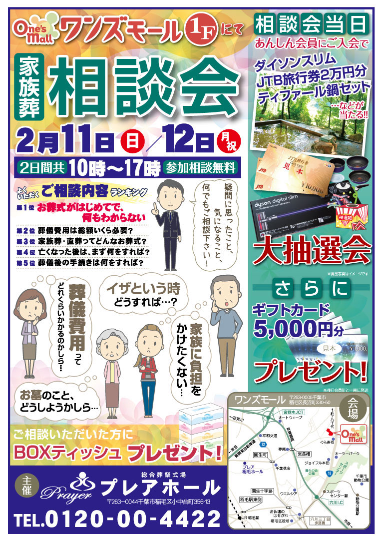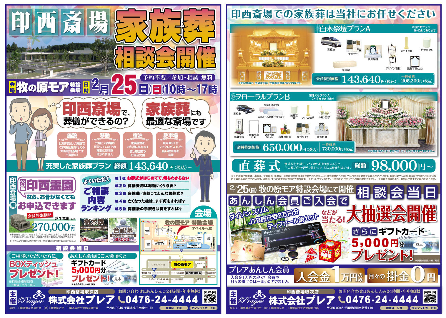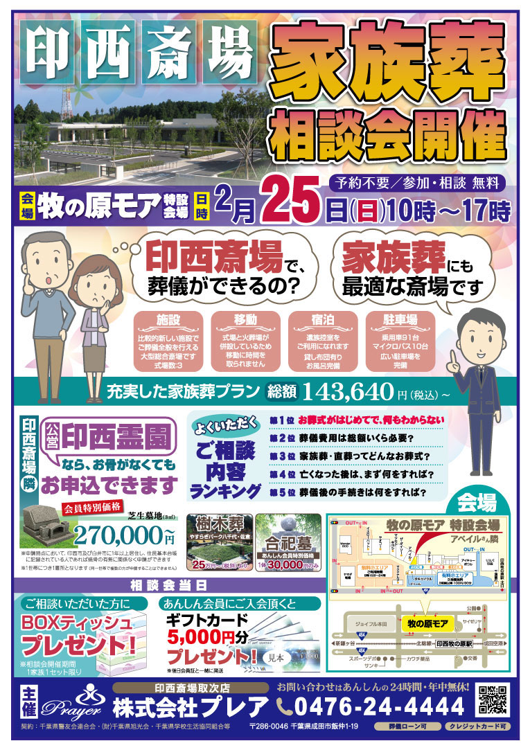 2月25日、牧の原モア特設会場にて家族葬相談会を行います。