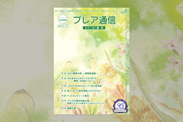 【おかげさまで35周年】プレアホールや各種相談会の最新情報等をお届けするプレア通信の2018年春号をお届けします。下記ボタンから、ウェブサイト上でも閲覧いただけます。
