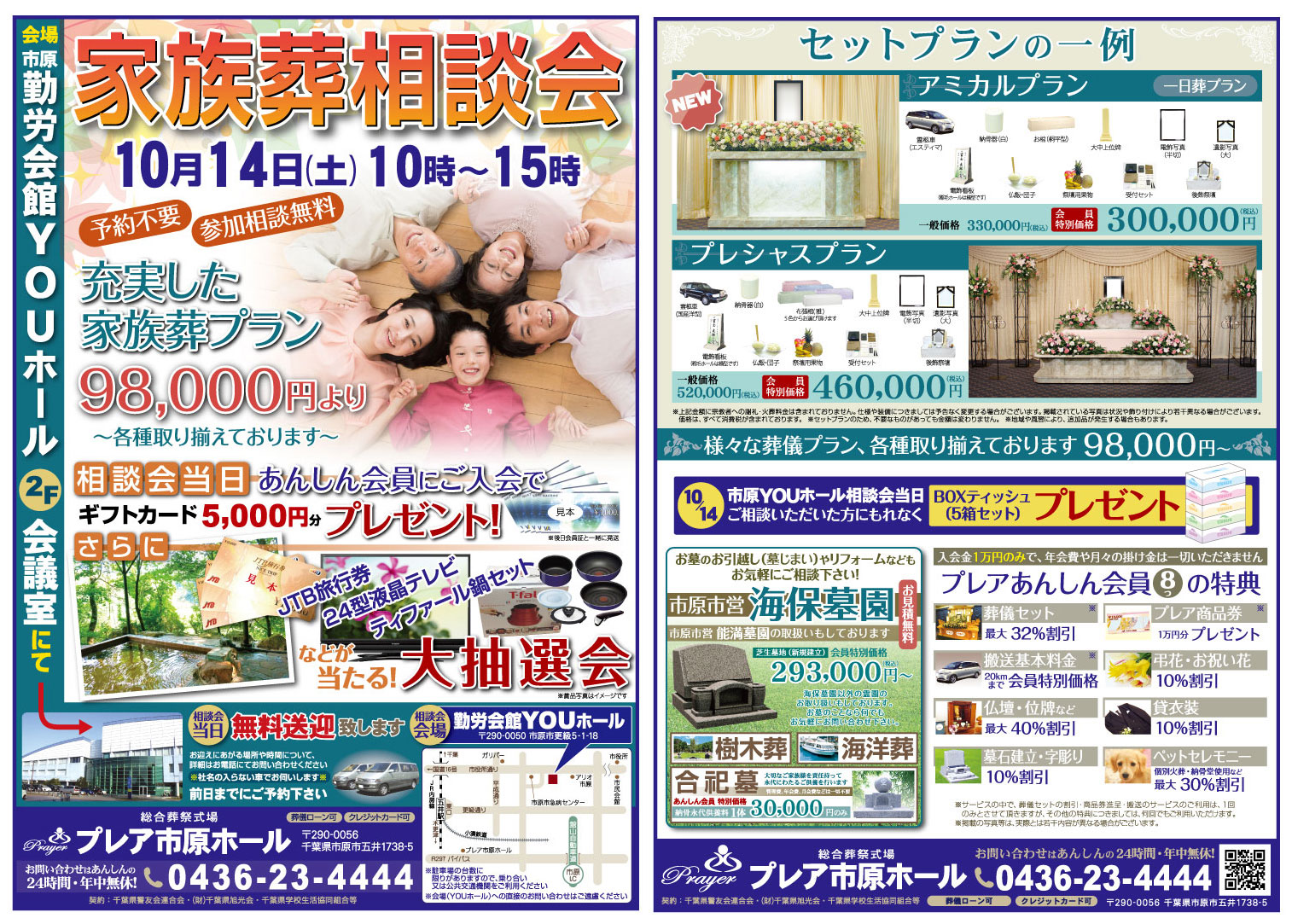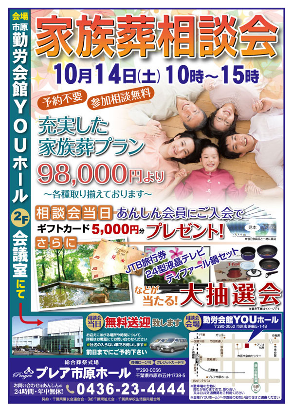 10月14日、市原勤労会館YOUホールにて家族葬相談会を行います。