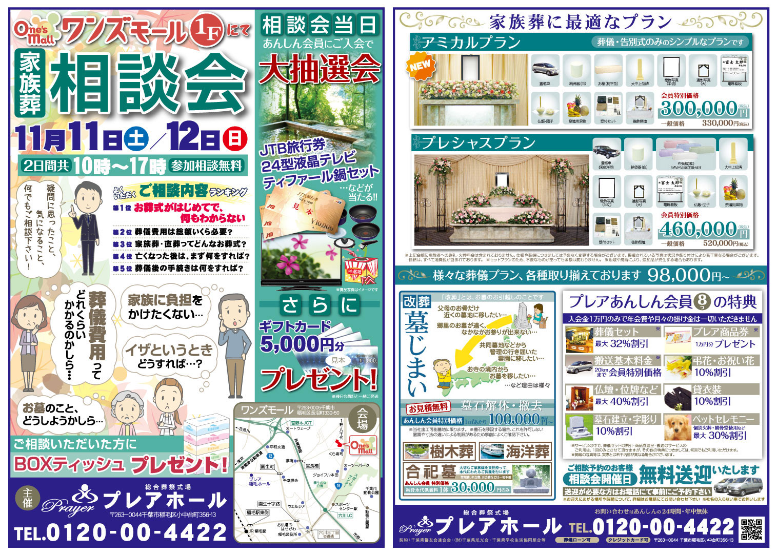 11月11、12日の2日間、ワンズモールにて家族葬相談会を行います。