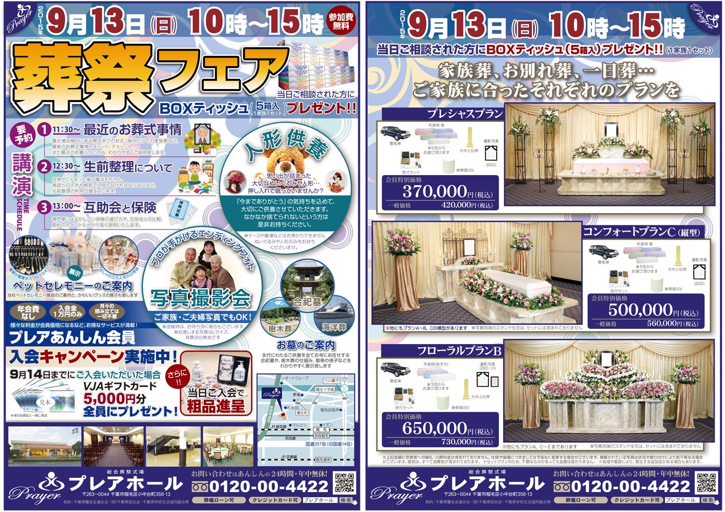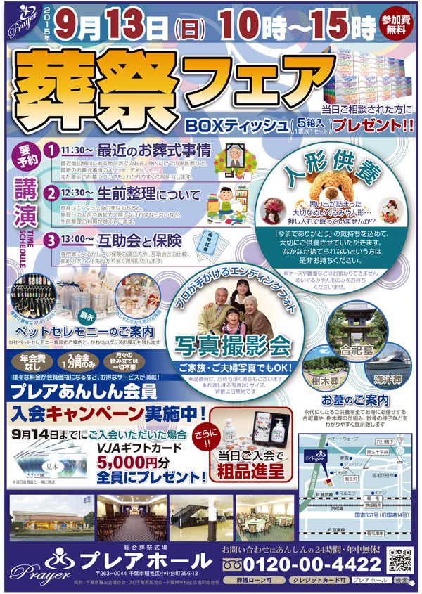 9月13日(日)プレア稲毛ホールにて葬祭フェアを開催します!