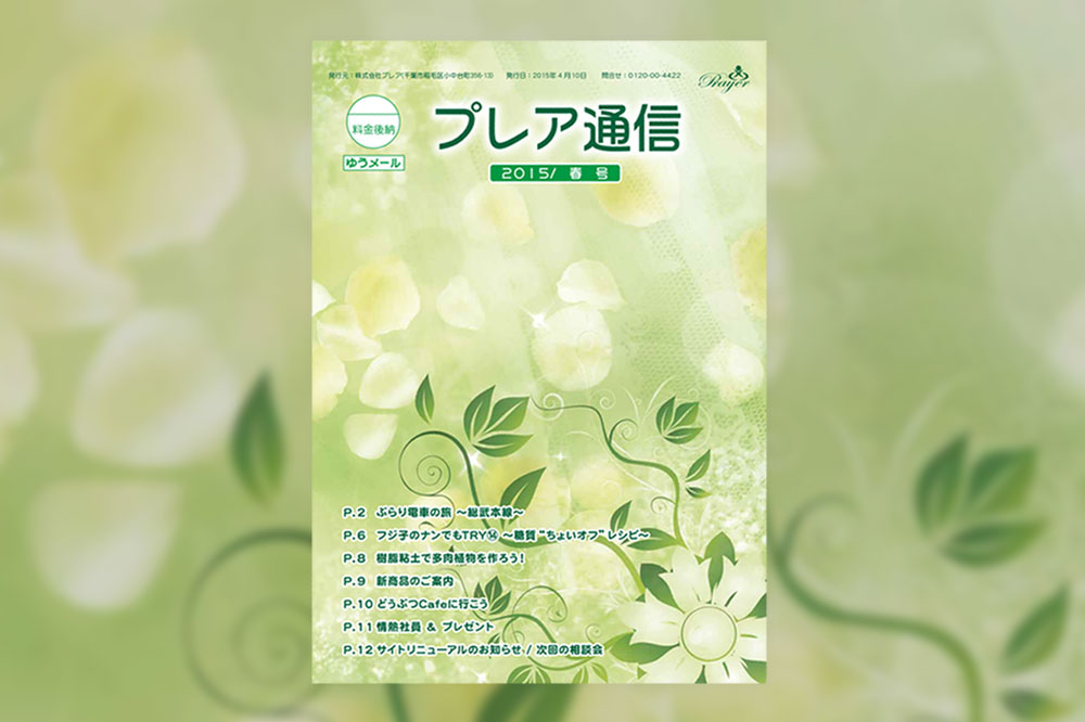 プレアホールや各種相談会の最新情報等をお届けする、プレア通信の2015年春号を送付いたしました。下記ボタンから、ウェブサイト上でも閲覧いただけます。