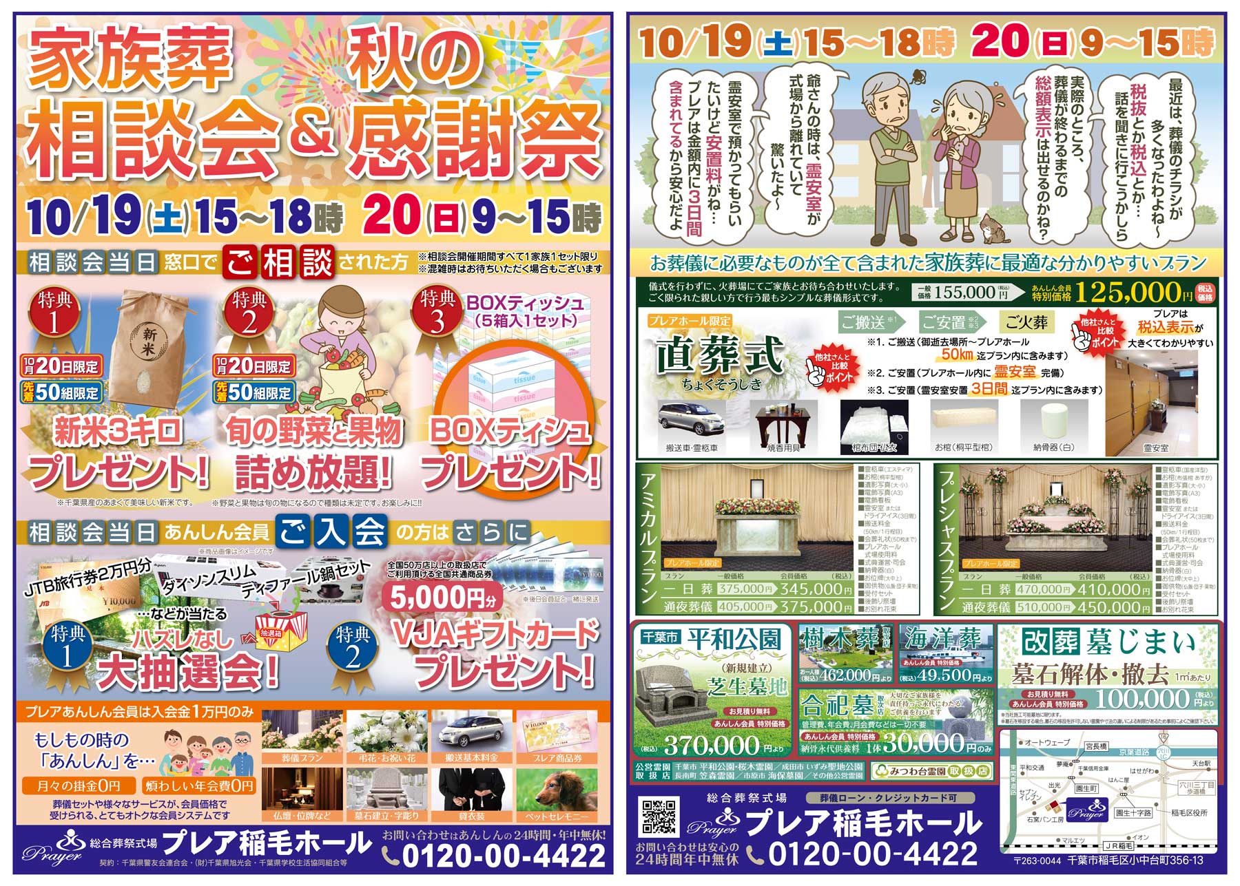 10月19日(土)、20日(日)の二日間、プレア稲毛ホールにて家族葬相談会&秋の感謝祭を行います。