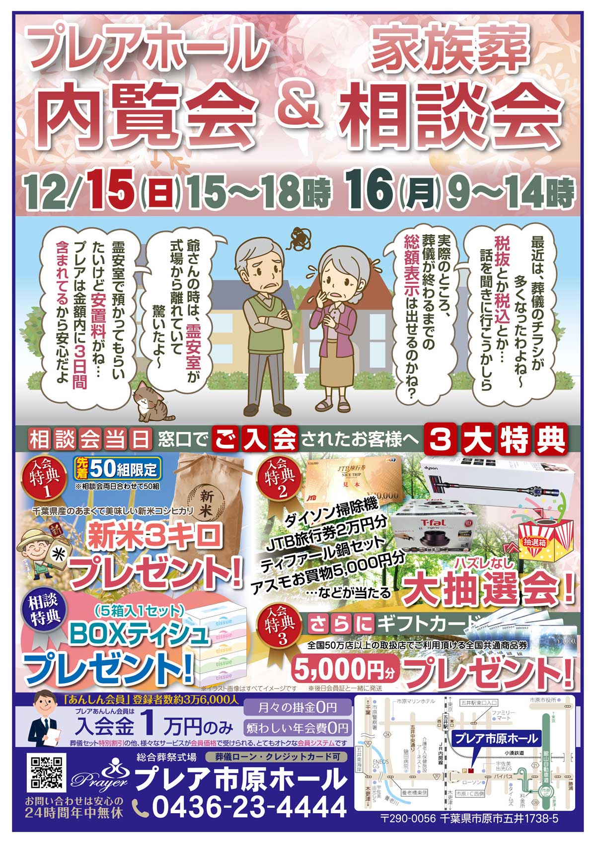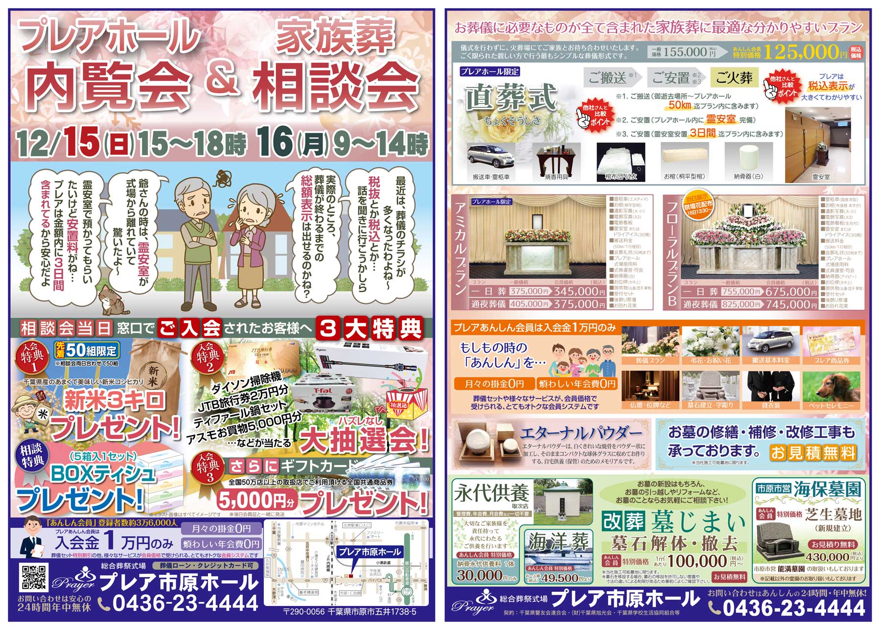 12月15日(日)、16日(月)の二日間、プレア市原ホールにてプレアホール内覧会&家族葬相談会を行います。