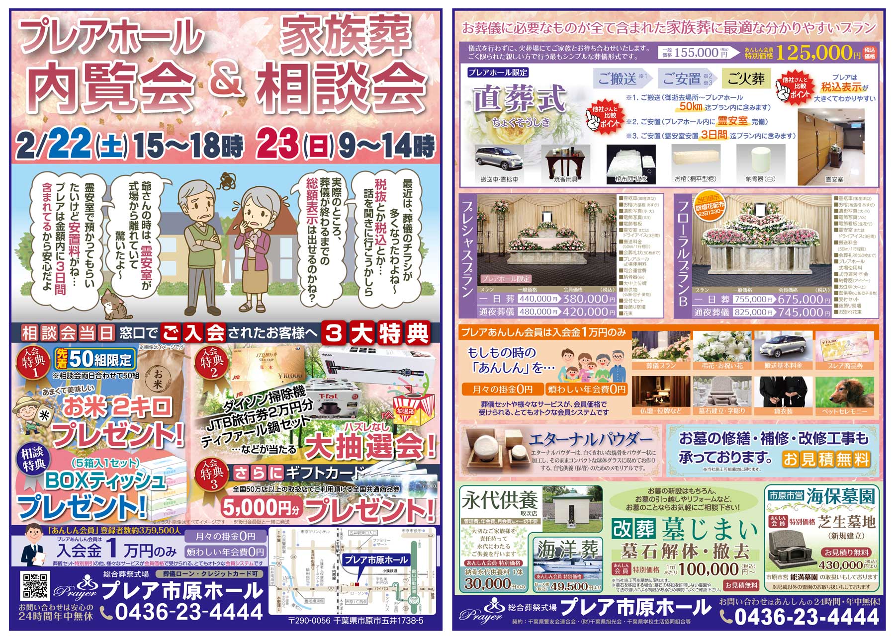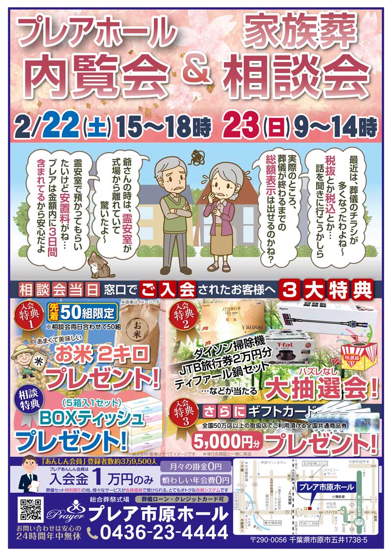 2月22日(土)、23日(日)の二日間、プレア市原ホールにて家族葬相談会を行います。