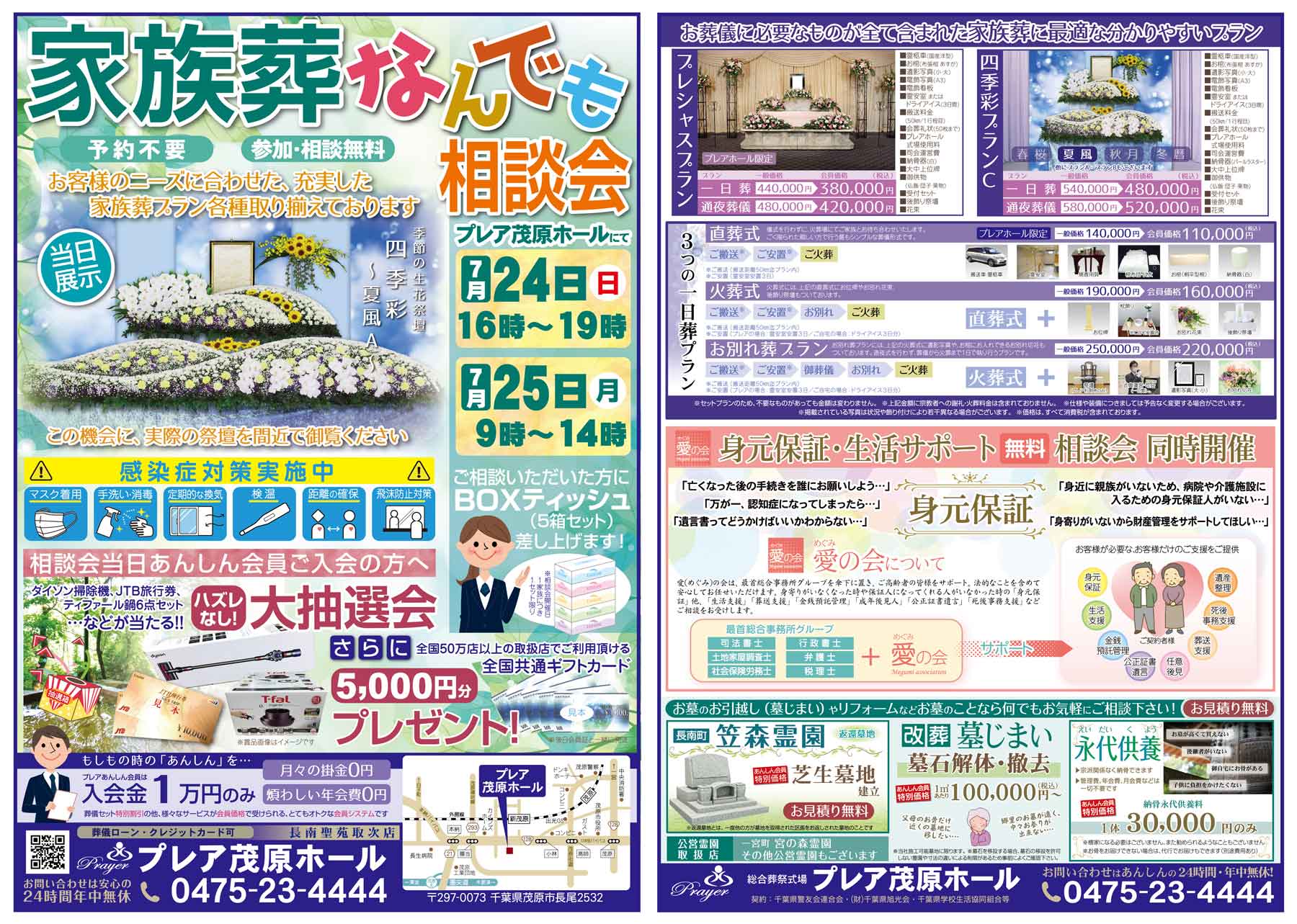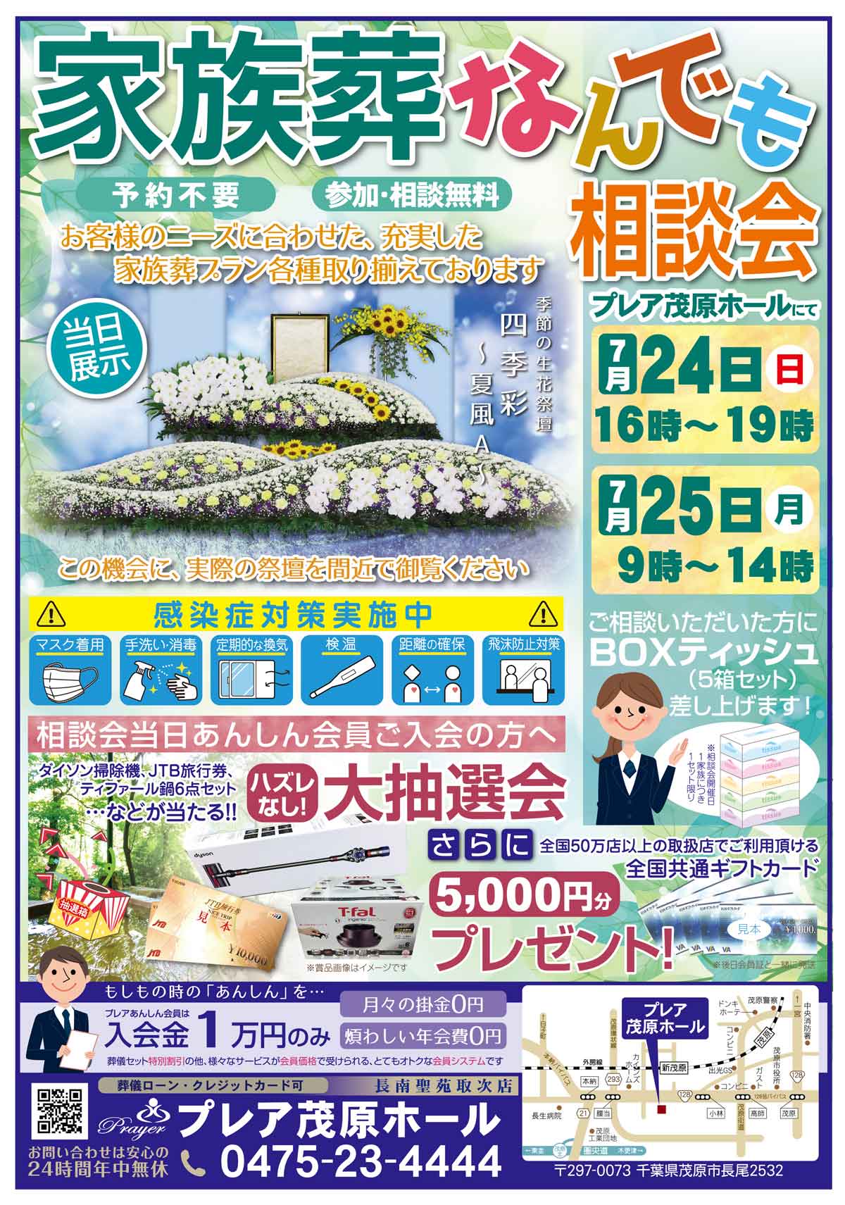 7月24日(日)、25日(月)の二日間、プレア茂原ホールにて家族葬なんでも相談会を行います!