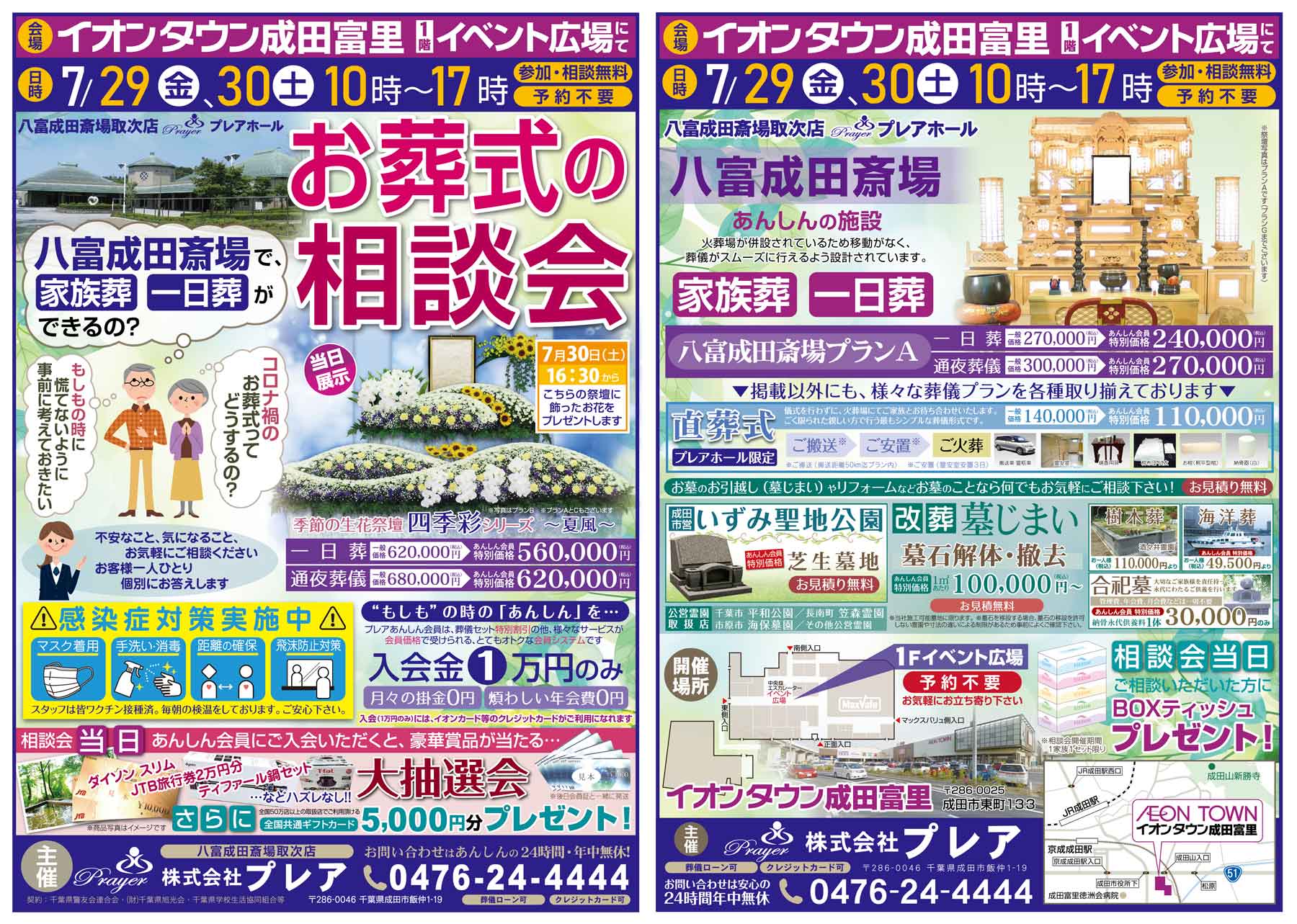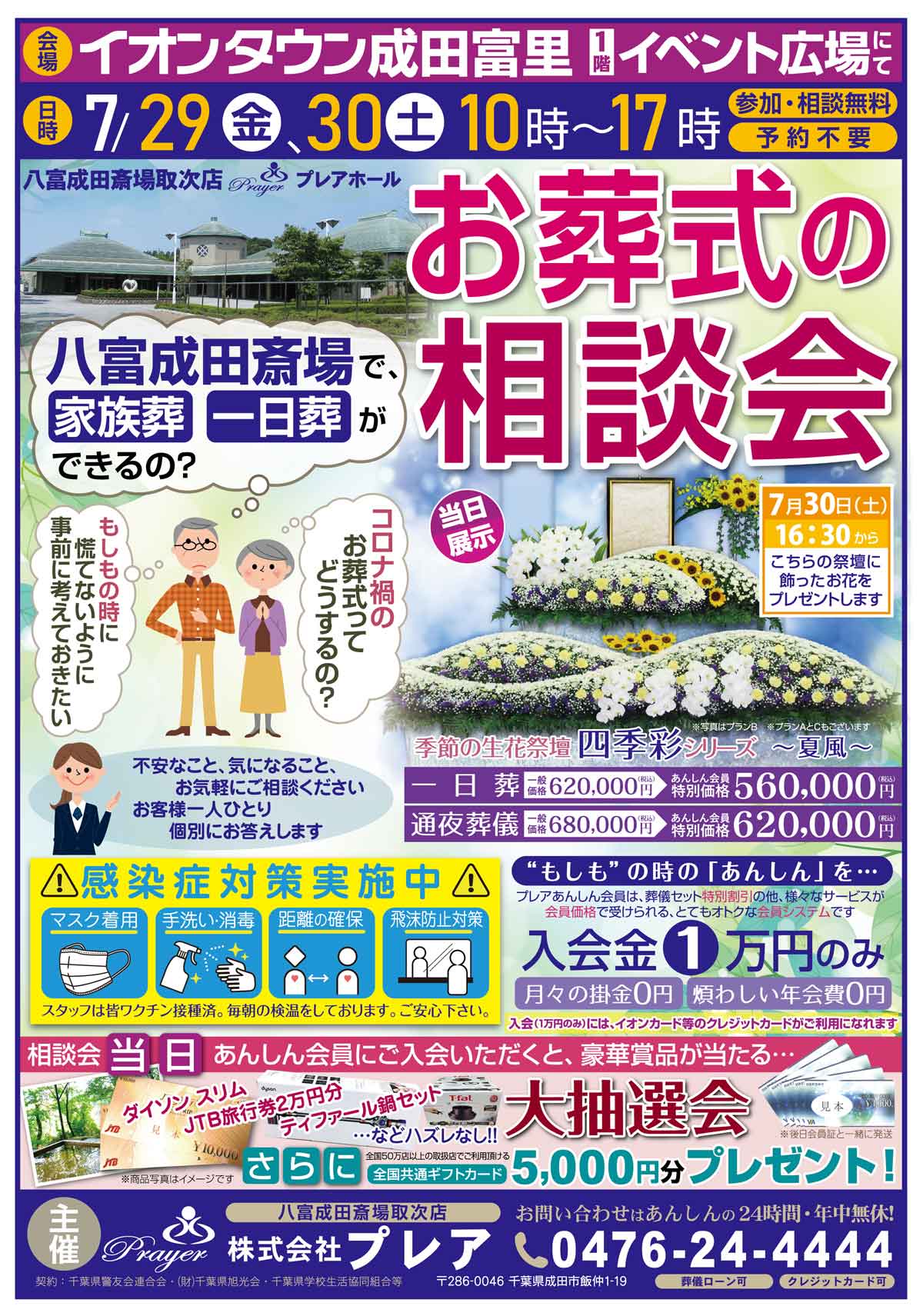 7月29日(金)、30日(土)の二日間、イオンタウン成田富里1階イベント広場にて、お葬式の相談会を行います!