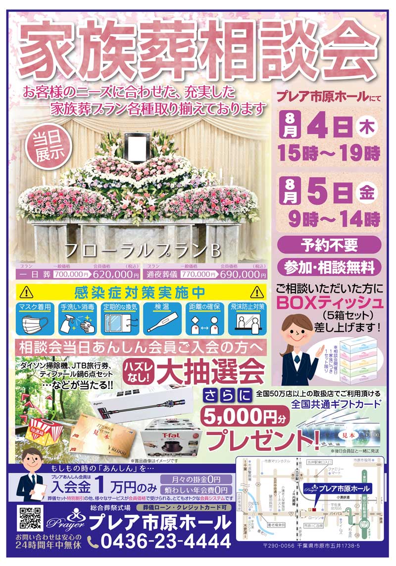 8月4日(木)、5日(金)の二日間、プレア市原ホールにて家族葬相談会を行います!
