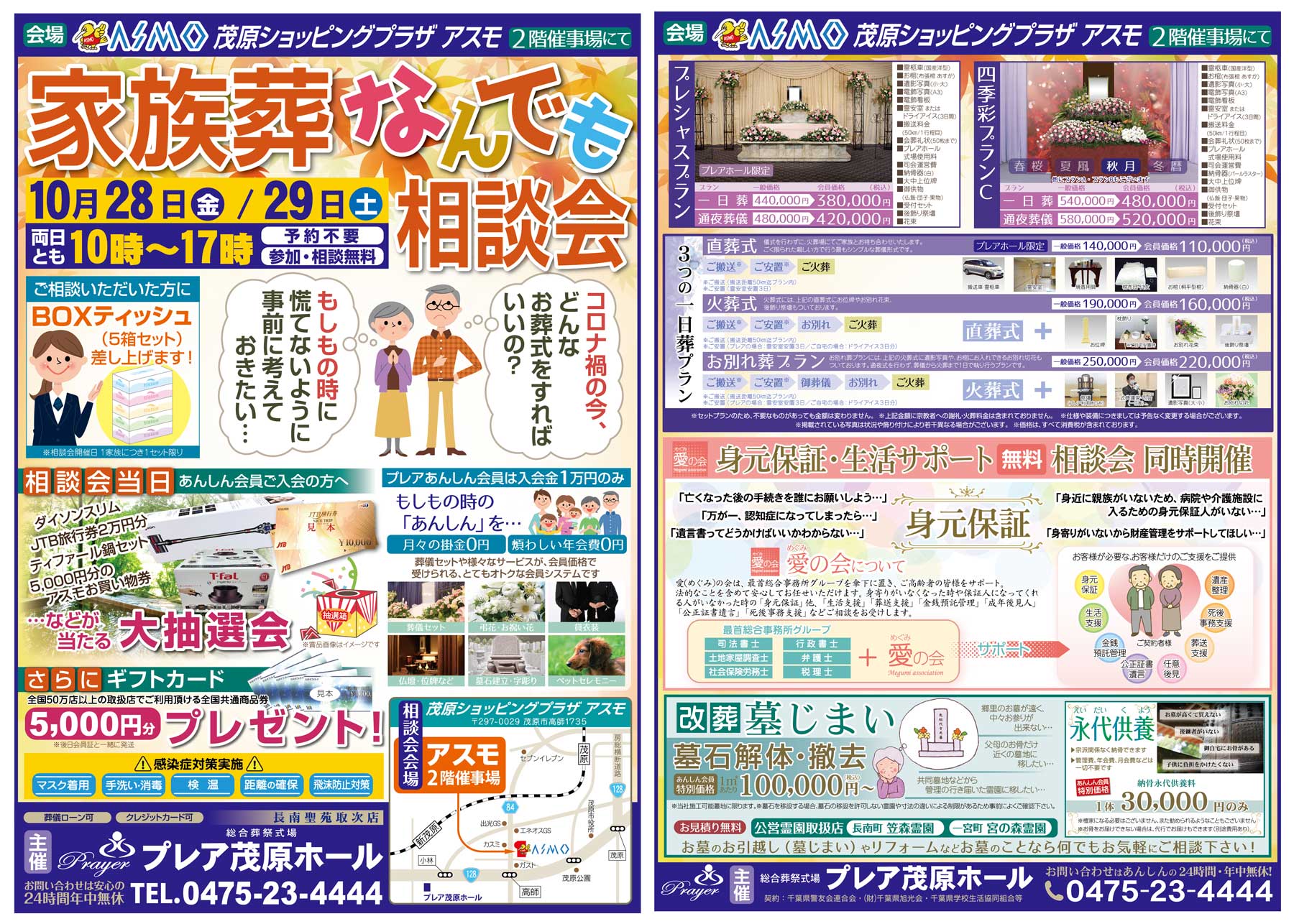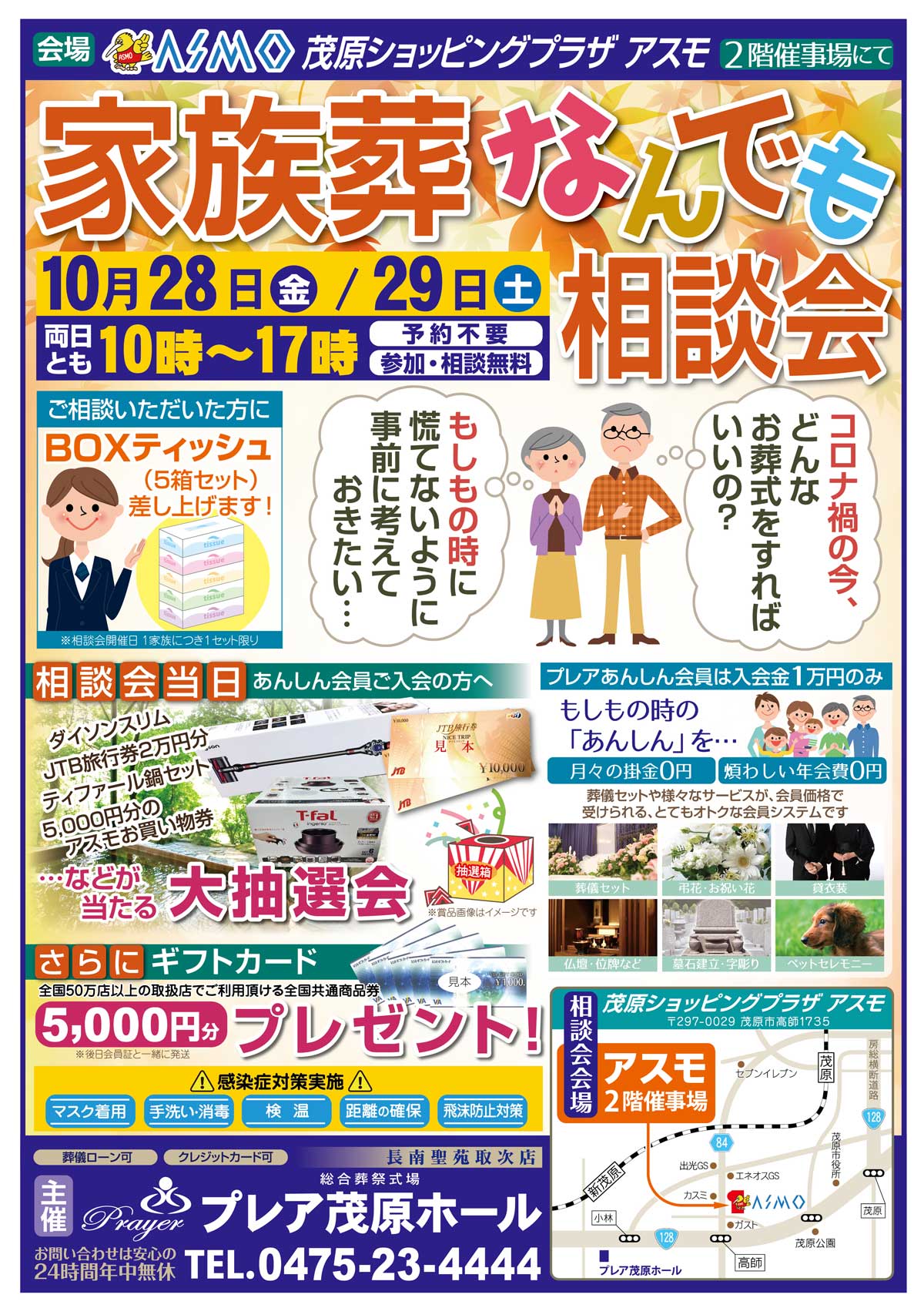 10月28日(金)、29日(土)の二日間、茂原ショッピングプラザ「アスモ」2階催事場にて“家族葬なんでも相談会”を行います。