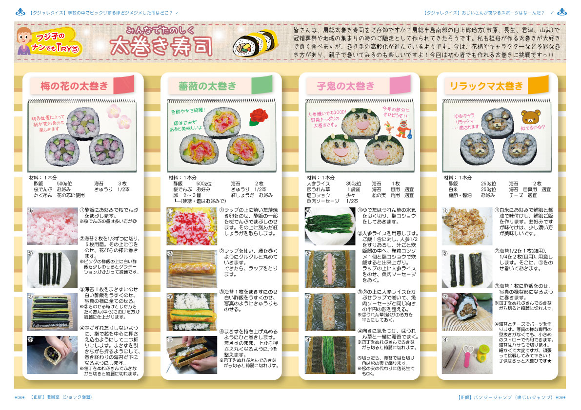 P.8 フジ子のナンでもTRY⑤ 〜太巻きレシピ〜