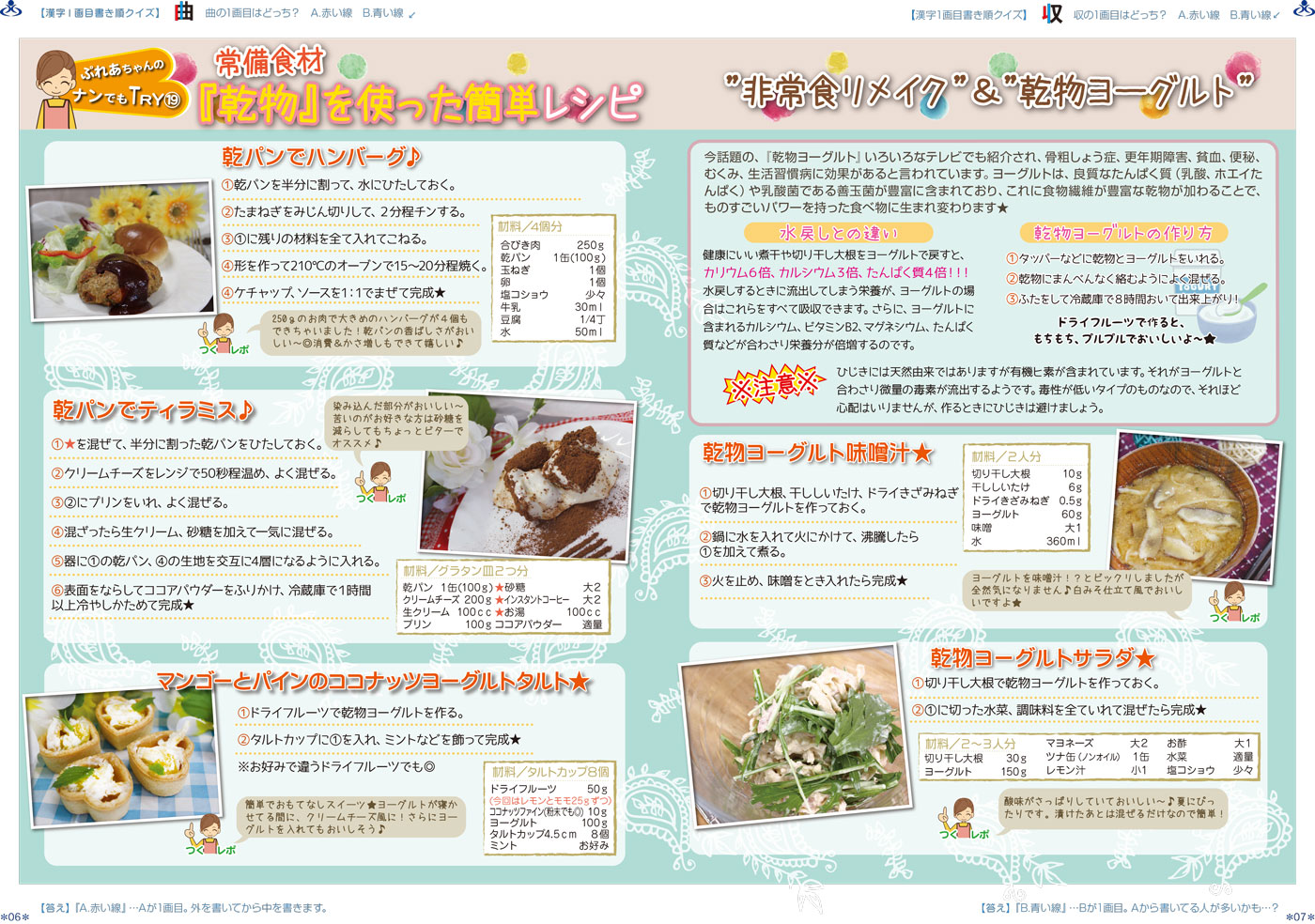 P.6 ぷれあちゃんののナンでもTRY⑲ 〜常備食材「乾物を使った簡単レシピ」〜