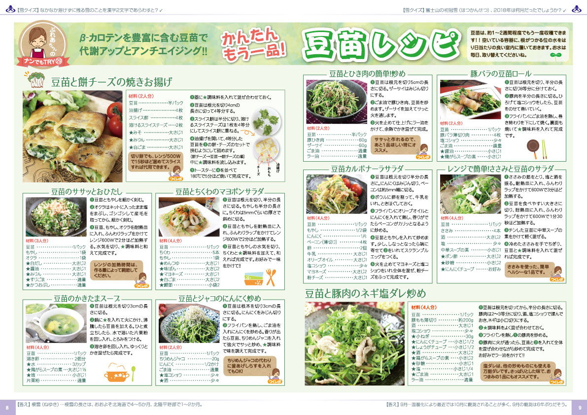 P.8 プレアちゃんのナンでもTRY㉙ 〜かんたんもう1品!豆苗レシピ〜