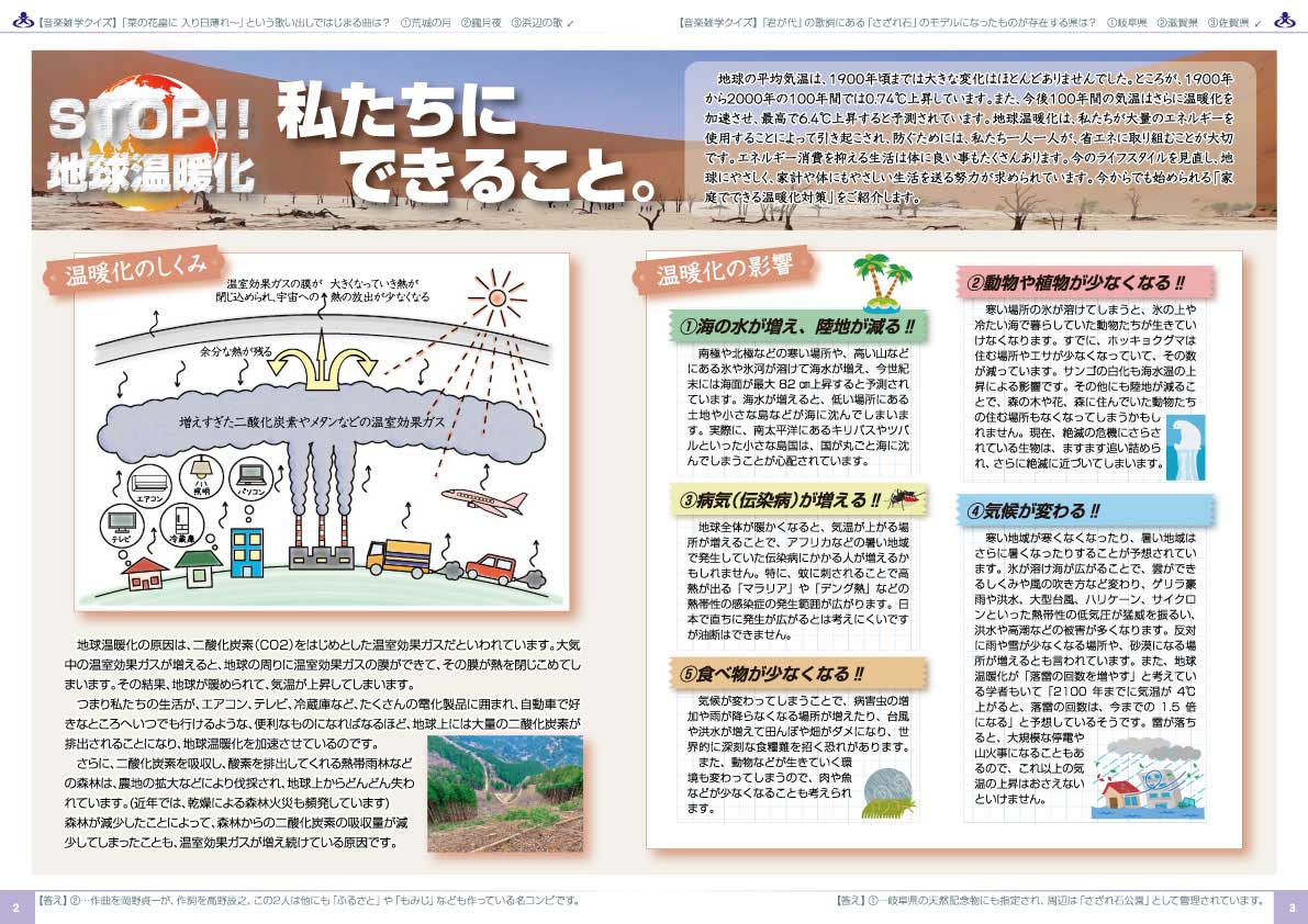 P.2 STOP!!地球温暖化 私たちにできること。〜はじめよう!家庭でできる温暖化対策〜
